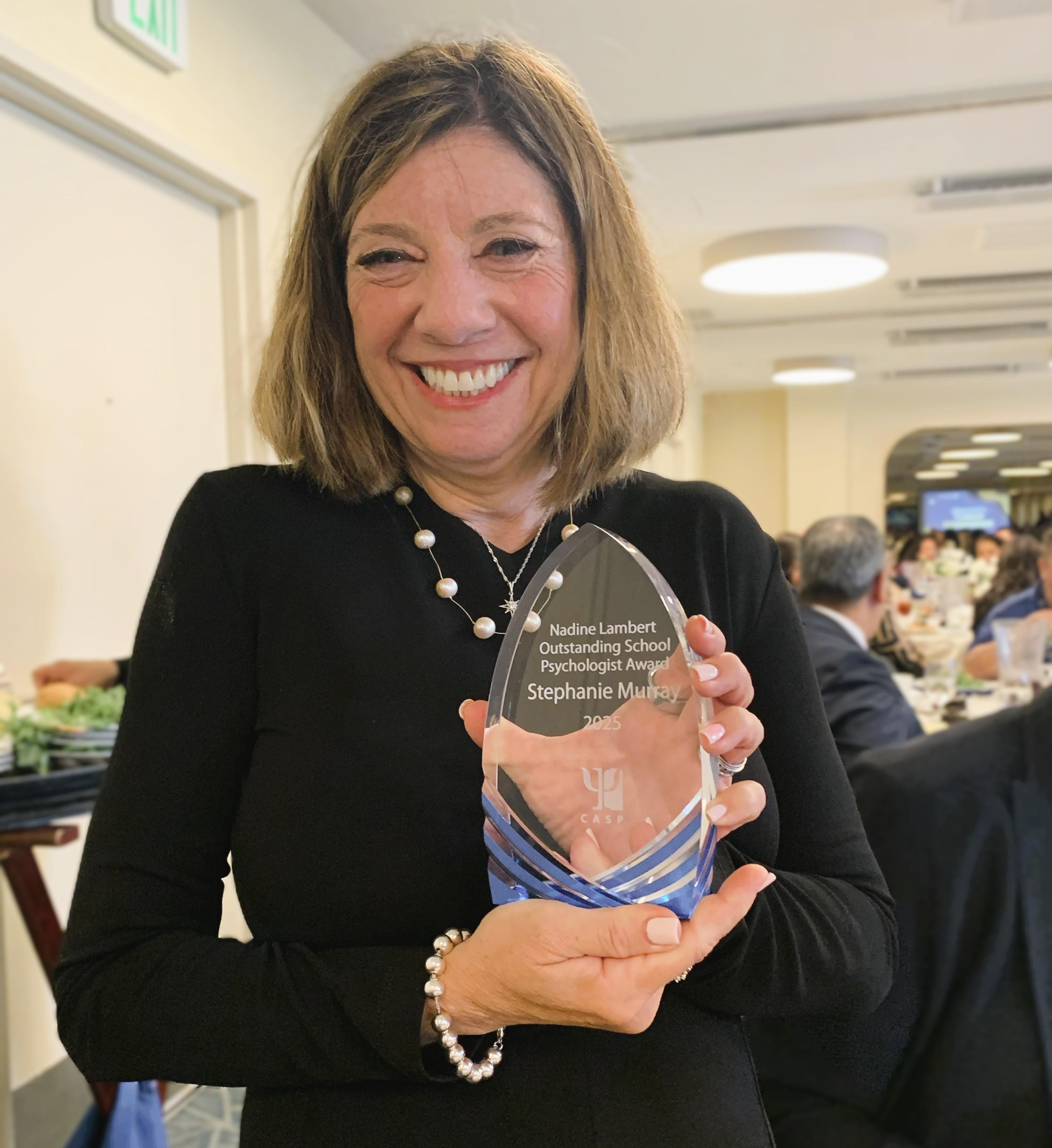 Whittier Union School Psychologist Recognized for Mental Wellness Advocacy Whittier Union school psychologist Stephanie Murray, an advocate for student well-being and suicide prevention for more than 30 years, has been recognized by the California Association of School Psychologists (CASP) with its Nadine Lambert Outstanding School Psychologist Award, given to psychologists for their dedication and innovative practices. Murray received her award at the 2025 CASP convention on Oct. 29. Murray began her Whittier Union career at California High School, where she worked to develop suicide prevention protocols, provide ongoing teacher training, and establish a centralized method of risk assessment and information sharing. The protocols were adopted Districtwide even before the passing of Assembly Bill 2246 in 2016, which requires all California school districts to have suicide prevention policies and protocols in place. Murray also serves as co-chair of the Los Angeles County Child and Adolescent Suicide Review Team, is a member of the Los Angeles Suicide Prevention Network, is a suicide prevention consultant for the Los Angeles County Office of Education (LACOE), and is a member of CASP’s Mental Wellness Committee. “This is a huge honor. There are so many psychologists who are doing such important work who rarely get recognized, so this is special,” Murray said. “It’s wonderful to work at Whittier Union, which understands the importance of providing support for student well-being and mental health.” Murray said she was compelled to enter the psychology field when, as a high school student, she felt adults were not seriously addressing student wellness concerns while determining on their own whether a student had true social-emotional issues. The short-sighted approach guided Murray’s career arc as a psychologist. “Students need to be heard, especially when they are in distress. There should never be any judging,” Murray said. “That is why I wanted to work at a school and not in private practice. Every student, no matter their economic status, deserves to have someone they can talk to and trust.” Murray’s work has also stood out among her peers at Whittier Union, who marvel at her unparalleled dedication and profound impact on the community. Cal High science department chairperson Alex McKenzie, who recommended Murray for the CASP award, has seen firsthand Murray’s impact at the school site and beyond. “Stephanie is a champion for our students, and her efforts are seen across the District,” McKenzie said. “Her work with the LA County Child and Adolescent Suicide Review Team and Coroner’s Suicide Guidelines Task Force is also particularly impressive. It’s challenging work, reviewing suicides with other professionals. Stephanie is well deserving of this recognition.” As a school psychologist and suicide prevention advocate, Murray understands that there is always more work to be done, more data assessments to be evaluated, and more people to train. But she does feel the practices implemented at Whittier Union have made a positive impact, with school site student wellness surveys showing a rise in students feeling connected, identifying at least one adult on campus they can talk to and trust. “Stephanie Murray has dedicated her life to making school life safe and nurturing for our students,” Superintendent Dr. Monica Oviedo said. “She is so deserving of this honor. We can’t thank her enough for all that she has done to bring suicide prevention awareness and well-being protocols to Whittier Union, but her influence goes well beyond policy. Stephanie is truly someone who cares and her guidance in mental health matters makes us all better teachers and administrators.” PHOTO CAPTION WUHSD_CASPAWARD1: Whittier Union school psychologist Stephanie Murray was recognized with the Nadine Lambert Outstanding School Psychologist Award at the 2025 California Association of School Psychologists (CASP) convention on Oct. 29.